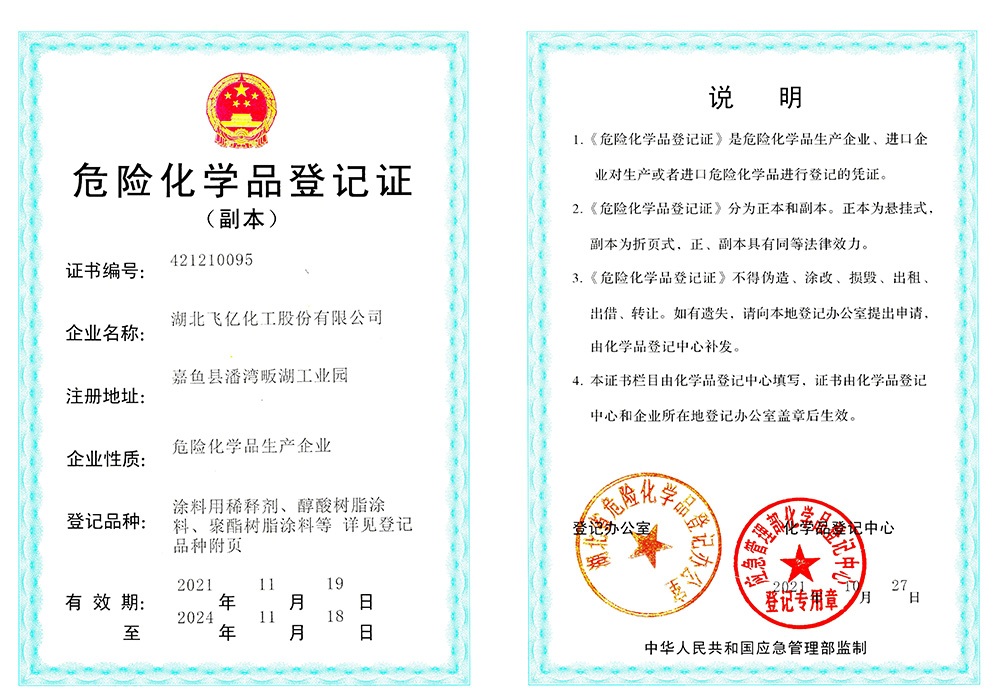 湖北飛億化工股份有限公司成立于2005年,專業(yè)從事各種油漆涂料稀釋劑的生產(chǎn)批發(fā),經(jīng)過公司全體員工的多年拼搏與努力,本著客戶至上、誠(chéng)信至上、質(zhì)量至上的三上原則和高素質(zhì)、高效率、高品質(zhì)的三高理念,公司在木器稀釋劑行業(yè)中取得了不菲的成績(jī)。在公司以批發(fā)為主的行銷原則下,在湖北、湖南、浙江、山東、山西、陜西、江西、貴州、廣西、廣東、安徽、河南、河北、江蘇、甘肅、青海、西藏、新疆等地建立了良好和健康的銷售網(wǎng)絡(luò)。湖北飛億化工股份有限公司以人為本、倡導(dǎo)學(xué)習(xí)。經(jīng)過多年的凝聚和歷練,公司擁有豐富實(shí)踐經(jīng)驗(yàn)的技術(shù)人員和銷售、生產(chǎn)的團(tuán)隊(duì),不斷研發(fā)適合市場(chǎng)和客戶的高質(zhì)量產(chǎn)品。并努力爭(zhēng)取各項(xiàng)產(chǎn)品和服務(wù)達(dá)到客戶滿意。為滿足市場(chǎng)和客戶要求,湖北飛億化工股份有限公司于2013年投資興建了占地30000平方的集生產(chǎn)、檢測(cè)、庫(kù)存于一體的現(xiàn)代化生產(chǎn)基地,公司熱忱歡迎有志之士與我們共同成長(zhǎng)、共同壯大和共同發(fā)展。